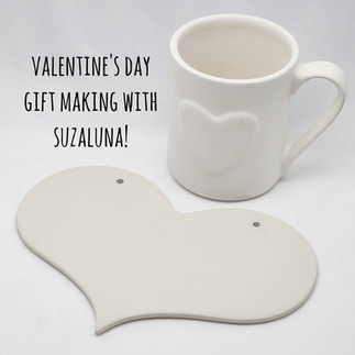 valentine gift pottery painting with suzaluna with special valentine's day themed options to choose from!